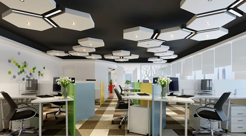 新型經濟社會最缺的就是人才,而人性化的辦公環境是必備條件之一。天花板上的創意六邊形,使得辦公空間富有想象力,讓職員的思緒能放開轄制,更好的為公司創造價值。清新亮麗的顏色搭配,讓人耳目一新,心情舒暢,能夠高效率的工作。