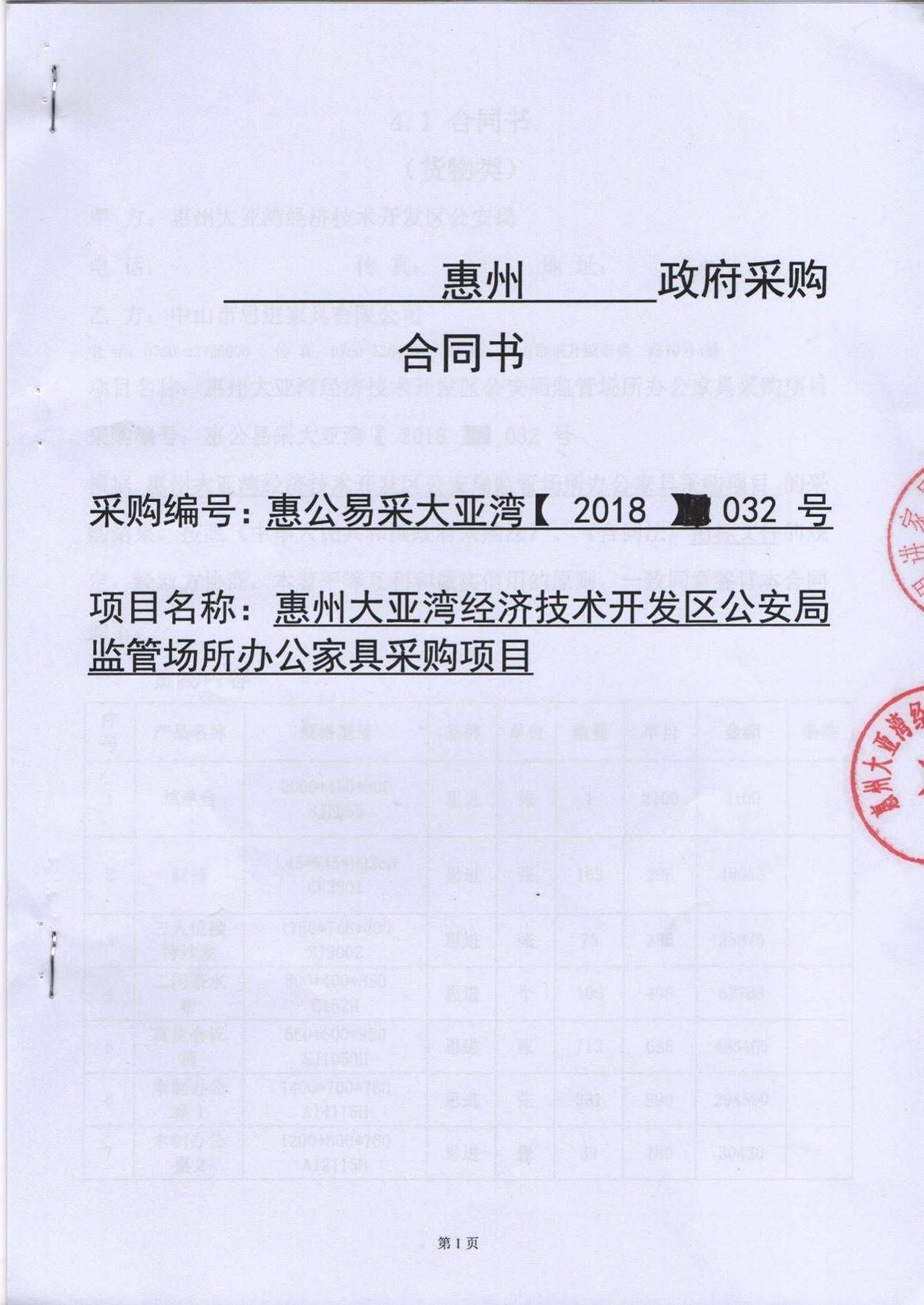 惠州大亞灣經濟技術開發區公安局監管場所辦公家具采購項目